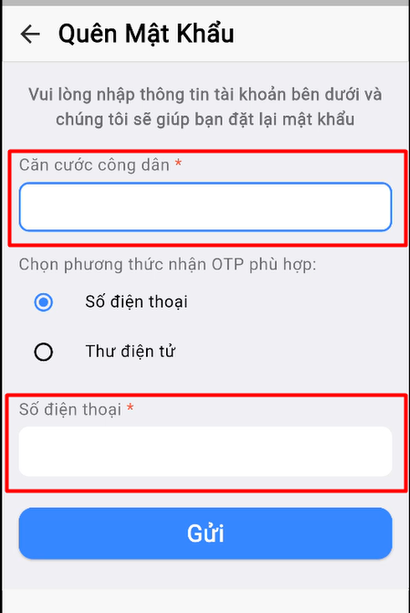 Bước 2: Nhập thông tin: Căn cước công dân và Số điện thoại ( đã đăng ký khi khám chữa bệnh ) -> Ấn Gửi