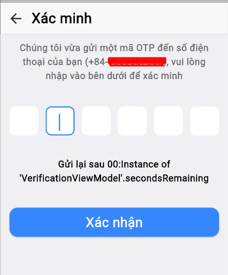 Bước 3: Nhập mã OTP gửi về -> Ấn Xác nhận để tiếp tục