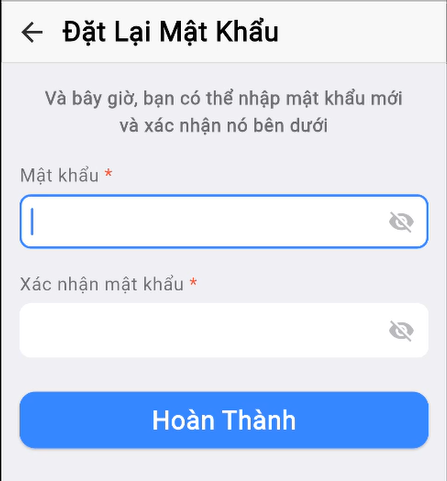 Bước 4: Nhập mật khẩu ( tối thiểu 8 ký tự ) sau đó xác nhận lại mật khẩu đã nhập -> Ấn Hoàn Thành