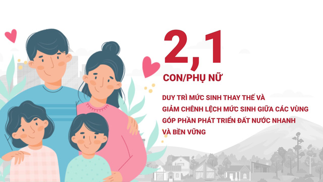 Tỷ lệ sinh để đảm bảo cho dân số phát triển bền vững là 2,1 con/phụ nữ (theo Tạp chí Sức khỏe)