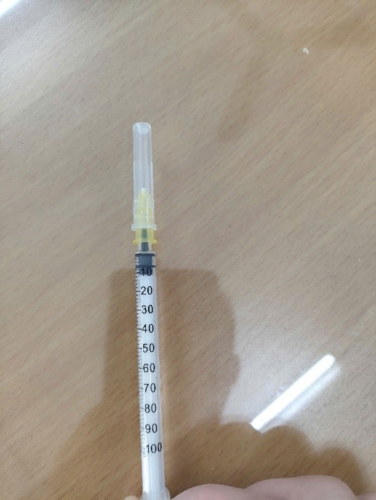 Bước 3: Xác định đúng vạch tiêm trên bơm tiêm insulin được cấp phát để lấy thuốc theo vạch chia đó.