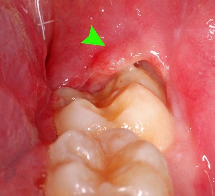 - Viêm lợi trùm, đau nhức: Phần nướu phủ lên răng mọc dở dang tạo kẽ hở cho vi khuẩn trú ngụ, gây sưng tấy, đau nhức và khó há miệng.