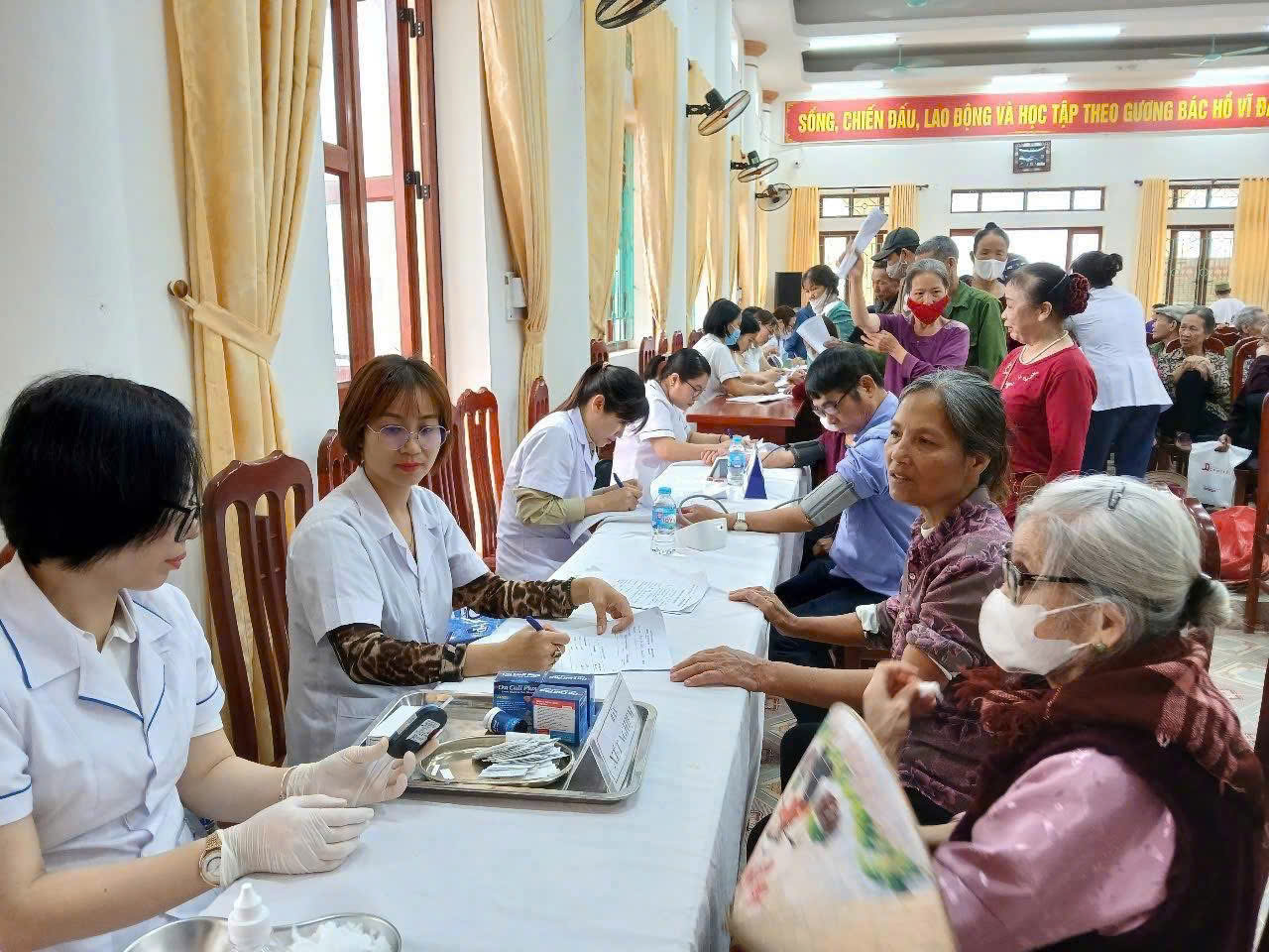 Nhân viên y tế Trung tâm Y tế Gia Lộc trong buổi tư vấn sức khỏe cho người dân