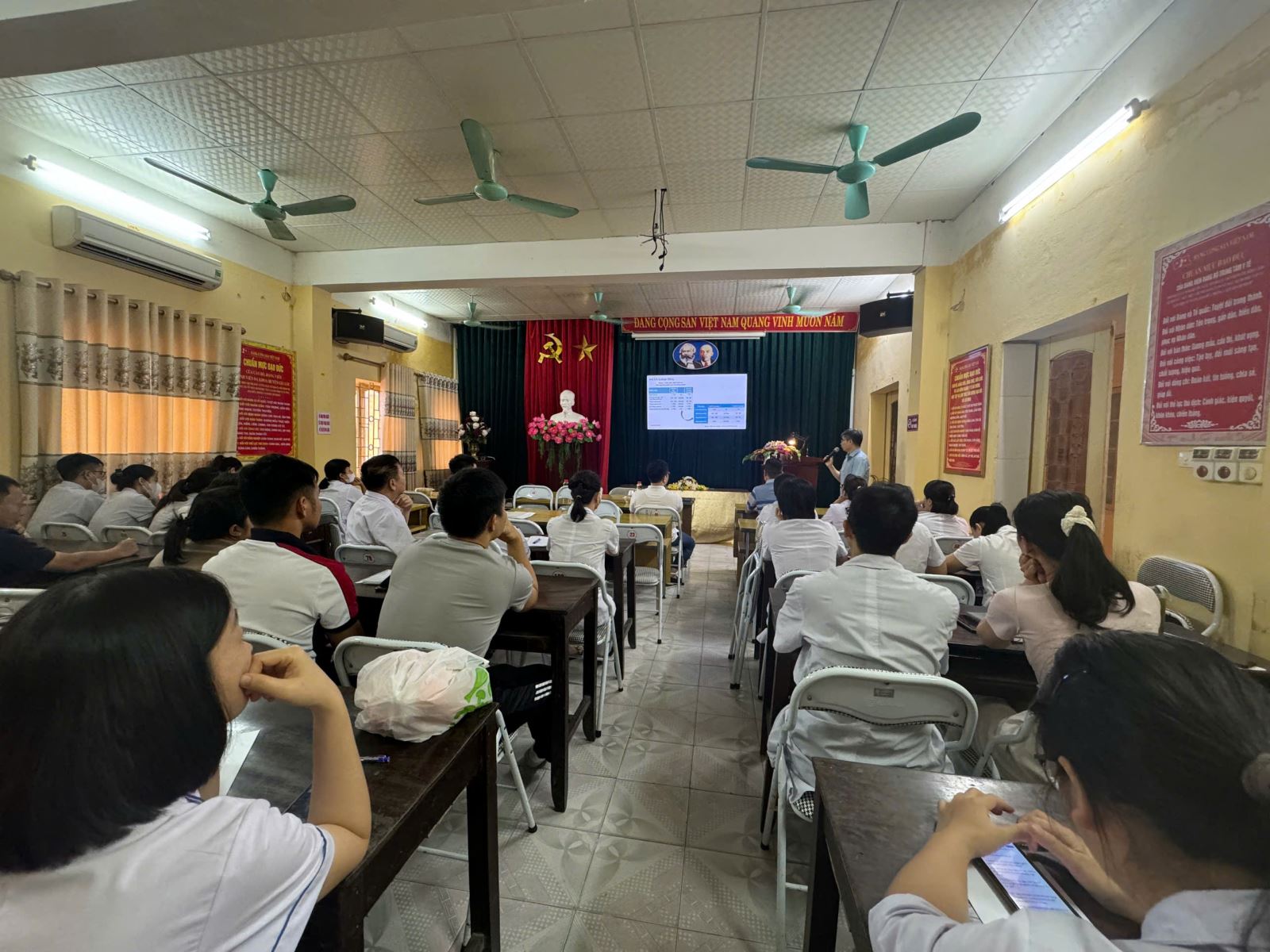 Chiều ngày 18/6/2025, Trung tâm Y tế Gia Lộc phối hợp với Bệnh viện đa khoa tỉnh tổ chức lớp tập huấn “CẬP NHẬT HƯỚNG DẪN THỰC HÀNH LÂM SÀNG QUẢN LÝ TĂNG HUYẾT ÁP 5Đ TỪ VSH/VNHA 2024” cho cán bộ nhân viên y tế.