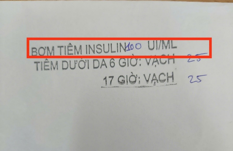 Nhưng bệnh nhân đã tiêm sai mũi Scilin 30/70 thành 10UI (vạch 10 ) trong 4-5 ngày, khiến đợt này bệnh nhân mệt mỏi, khát nước, tiểu nhiều, đường máu xét nghiệm tăng cao 15,5 mmol/l.